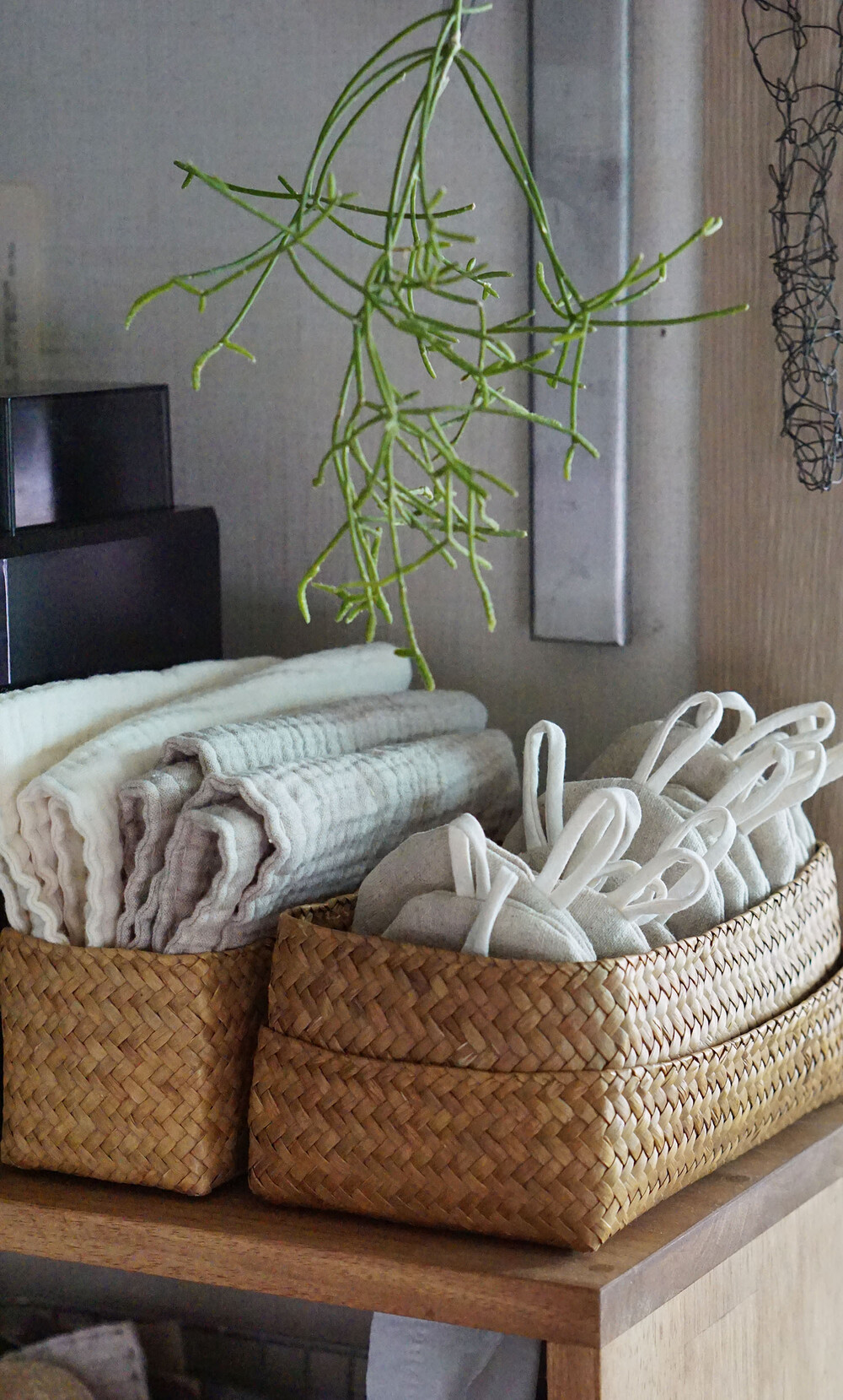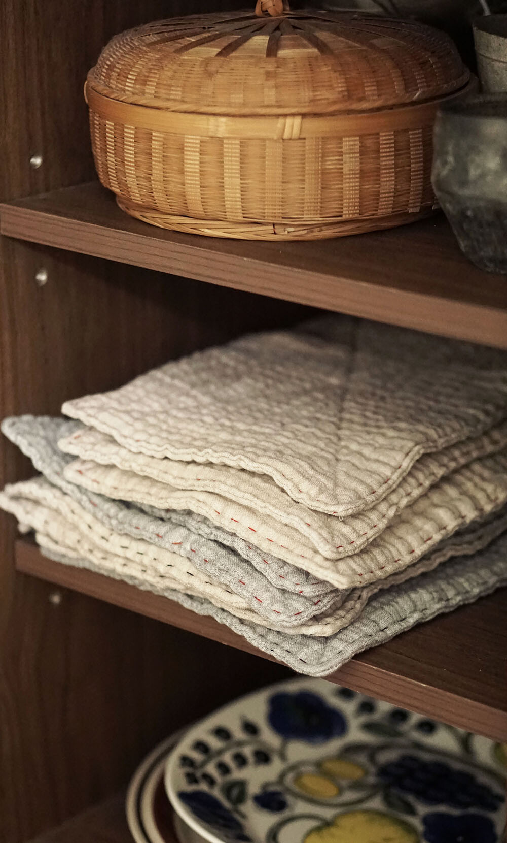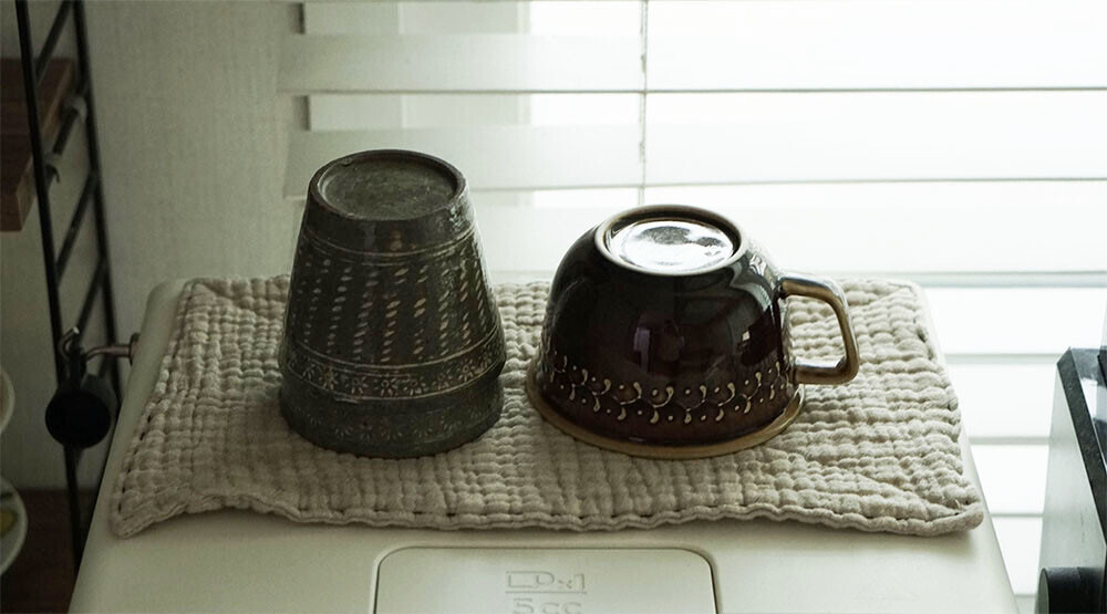 행주와 테이블매트입니다. 4중지를 2겹으로 봉제한 도톰한 소재로 작은 사이즈만으로도 충분히 행주의 역할을 합니다. 씻은 컵이나 설거지 거리를 말릴 때 깔아두거나 찻자리에서의 다건으로도 유용합니다. 식사용 테이블 매트로 깔아보았더니 급하게 차린 식탁도 금새 정성이 담긴 한끼가 되어지는 느낌이 들더라고요. 먼지가 앉은게 신경쓰이는 곳에 덮개 용도로도 좋으니,취향별로 용도별로 사이즈를 골라보는 재미도 느껴보세요.