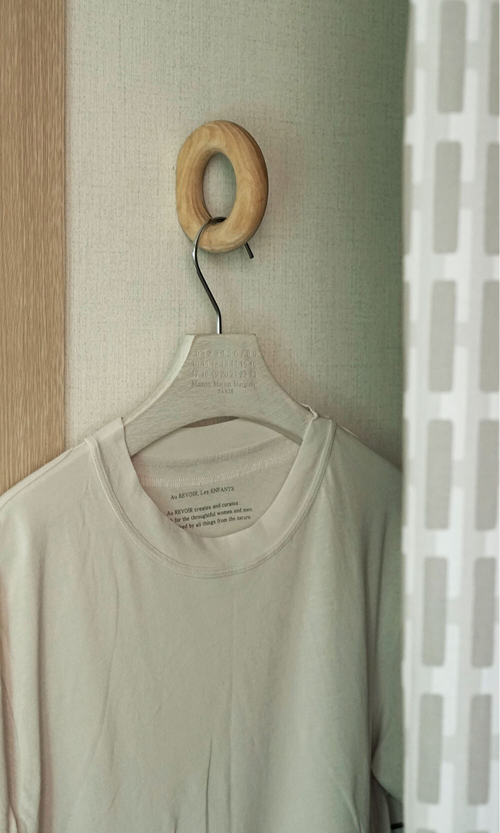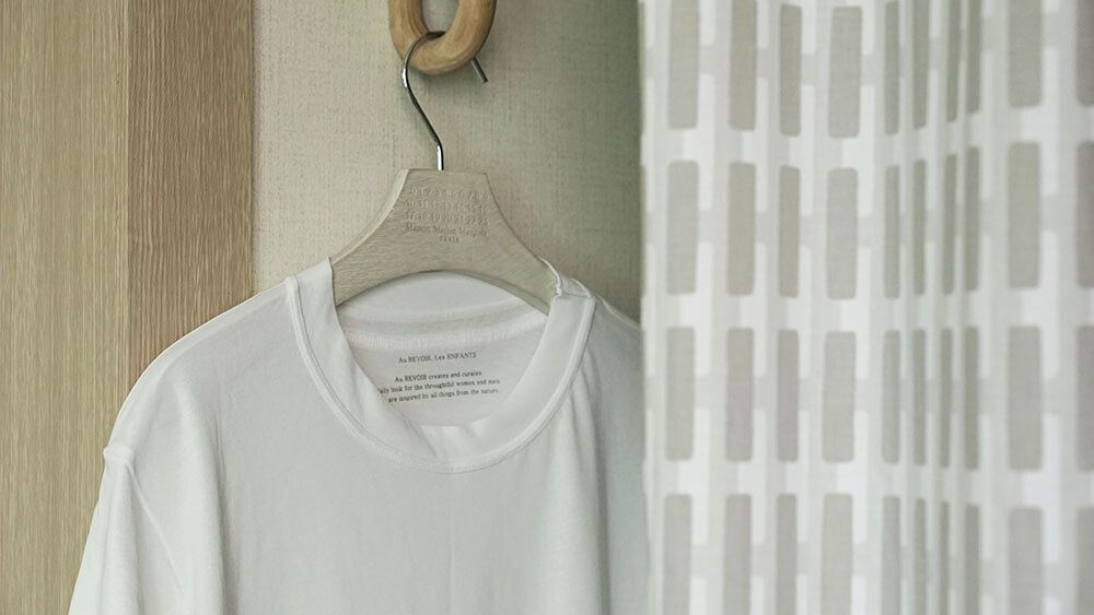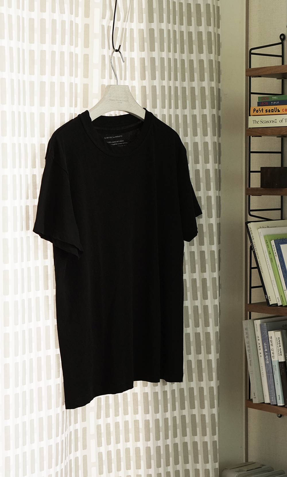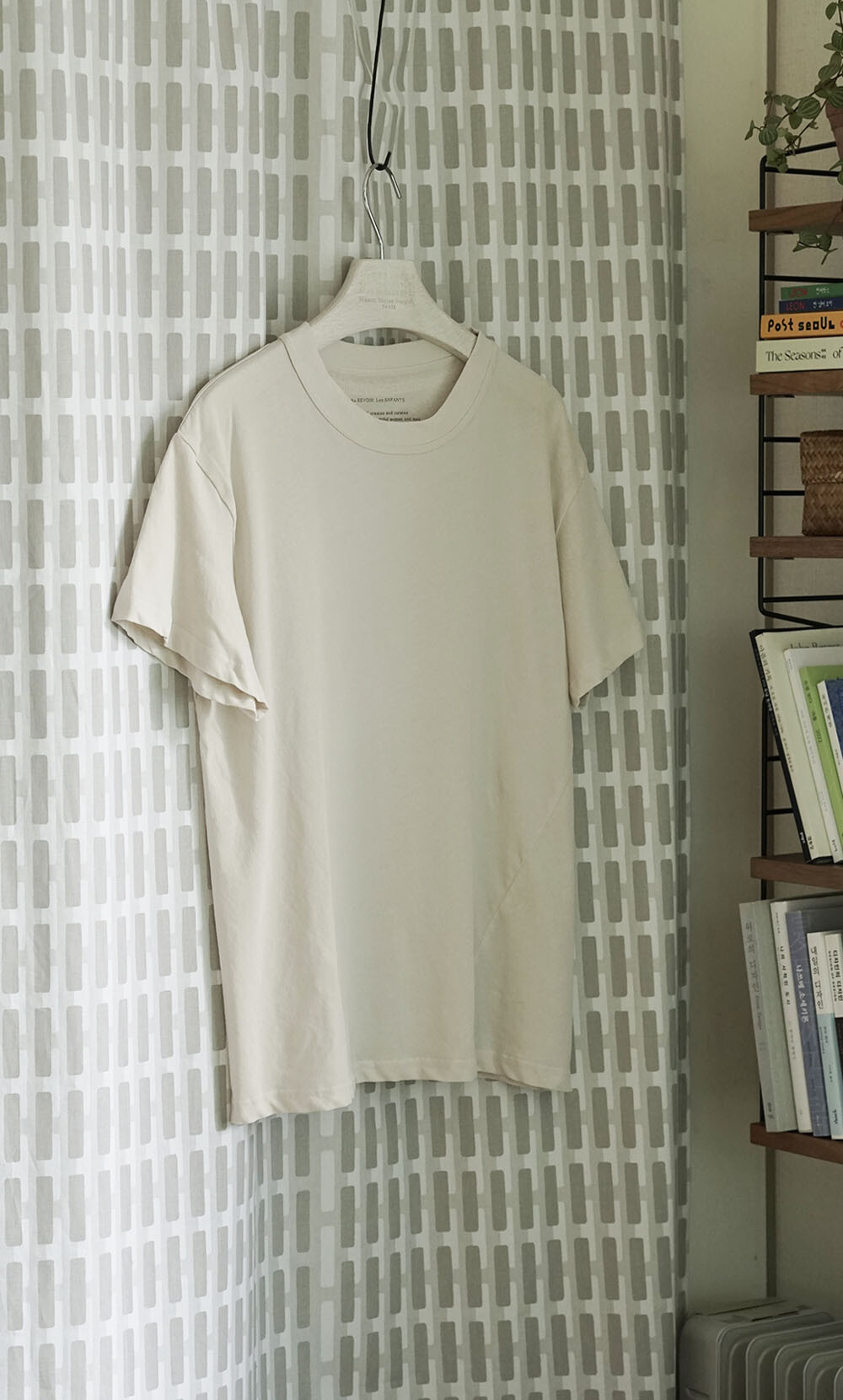 세탁을 한후에는 넥라인과 밑단부분이 원단의 특성상 사선으로 물결이 생기는 특성이 있습니다