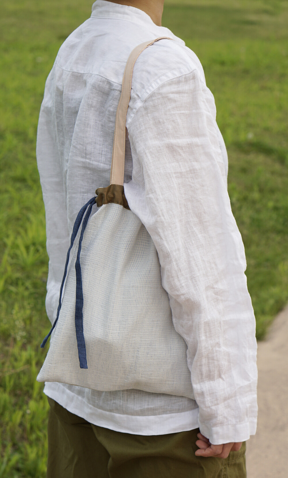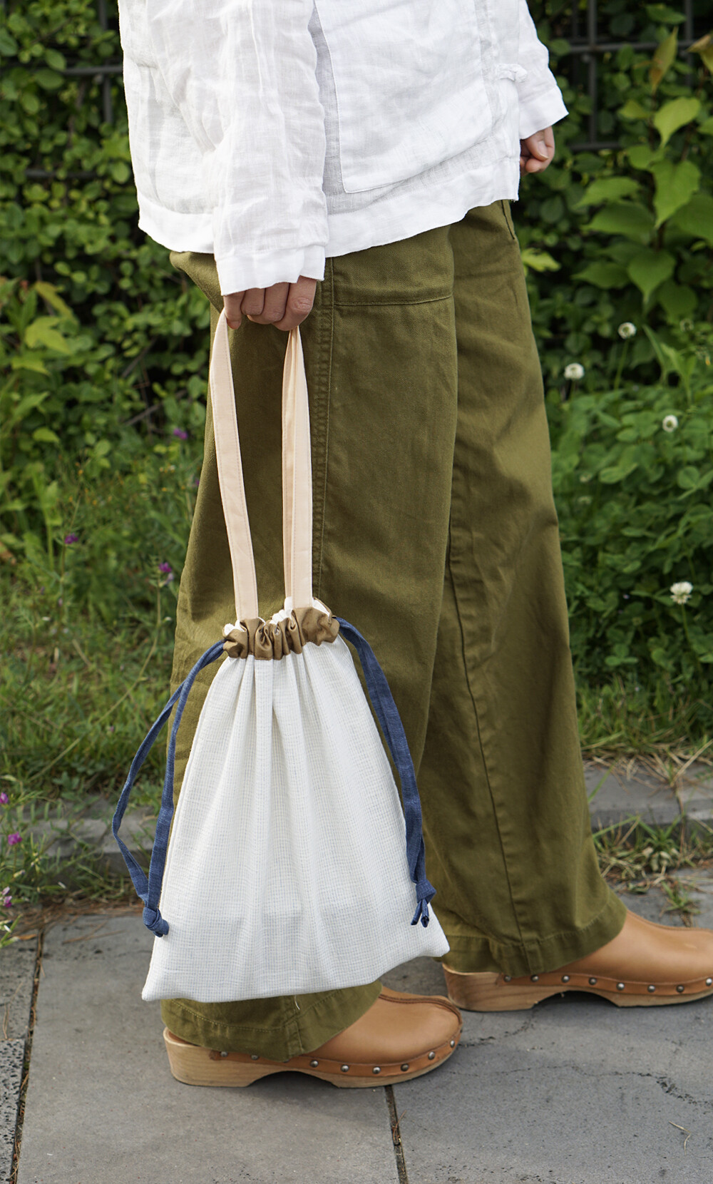 스트링을 잡아당기면 복주머니 형태로도 사용할 수 있으며, 스트링 끝을 묶어주거나 풀어주는 자유로운 방식으로 연출가능합니다. 겉감과 동일한 소재의 안감이 있어 내구성도 튼튼한 스트링백입니다.
