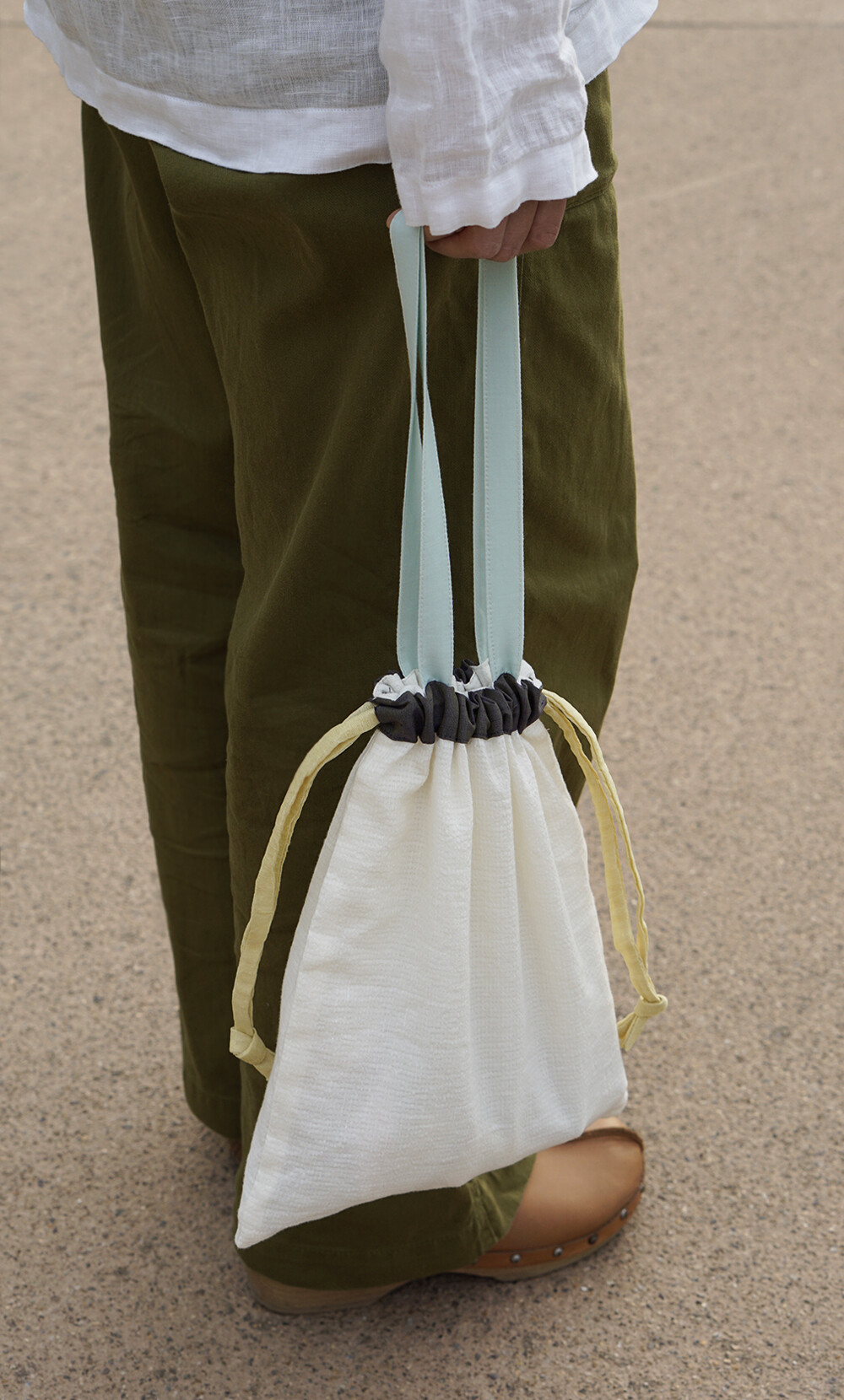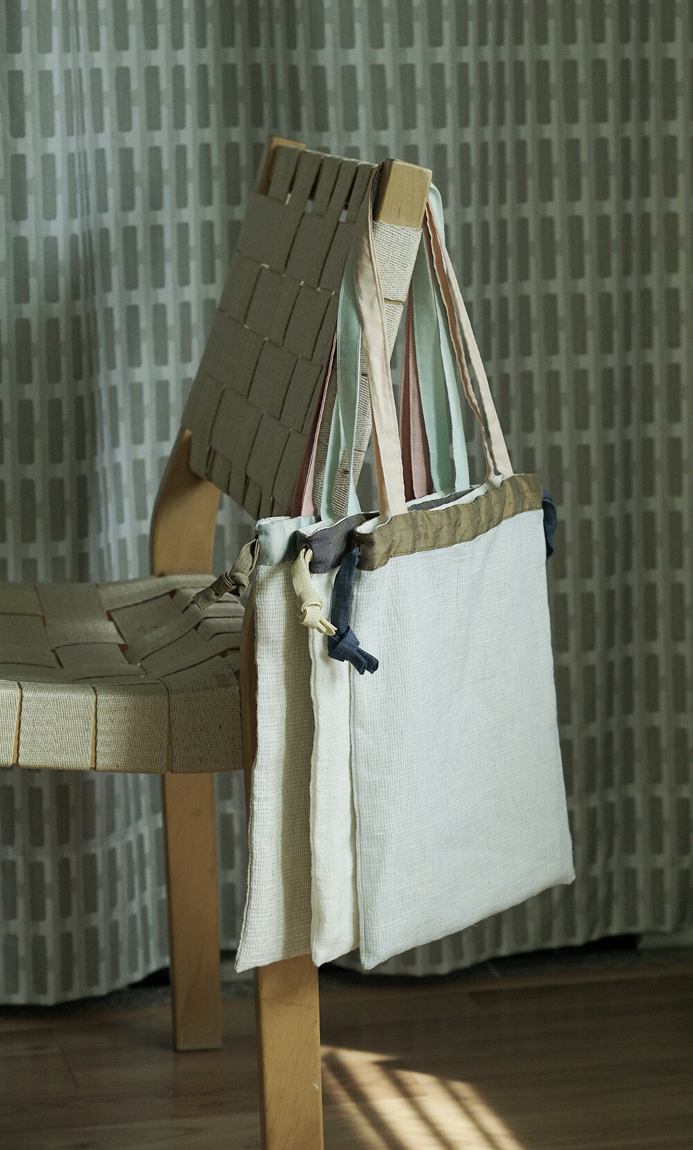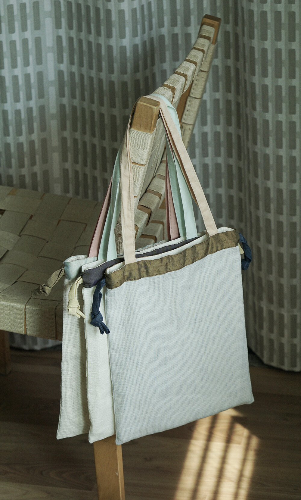 행주에 이어 두번째 작업은 한국적 배색 요소를 담은 string bag입니다 .
