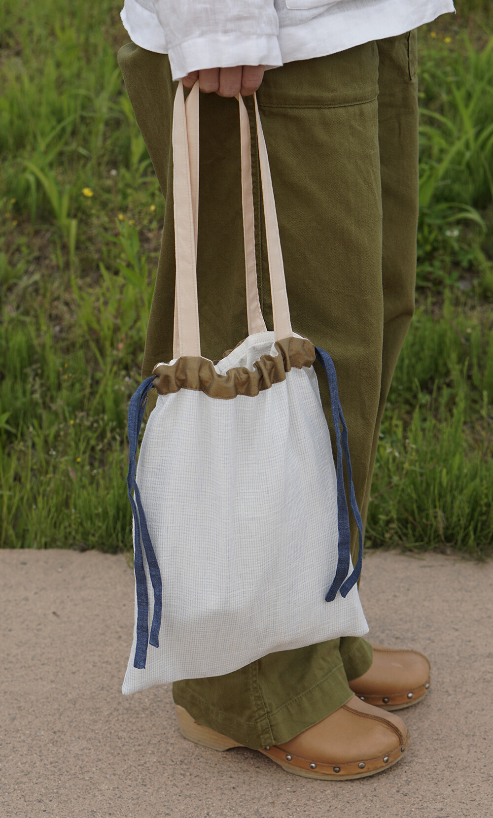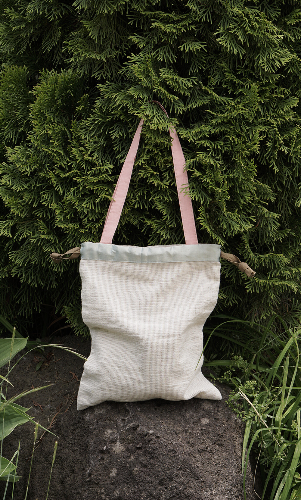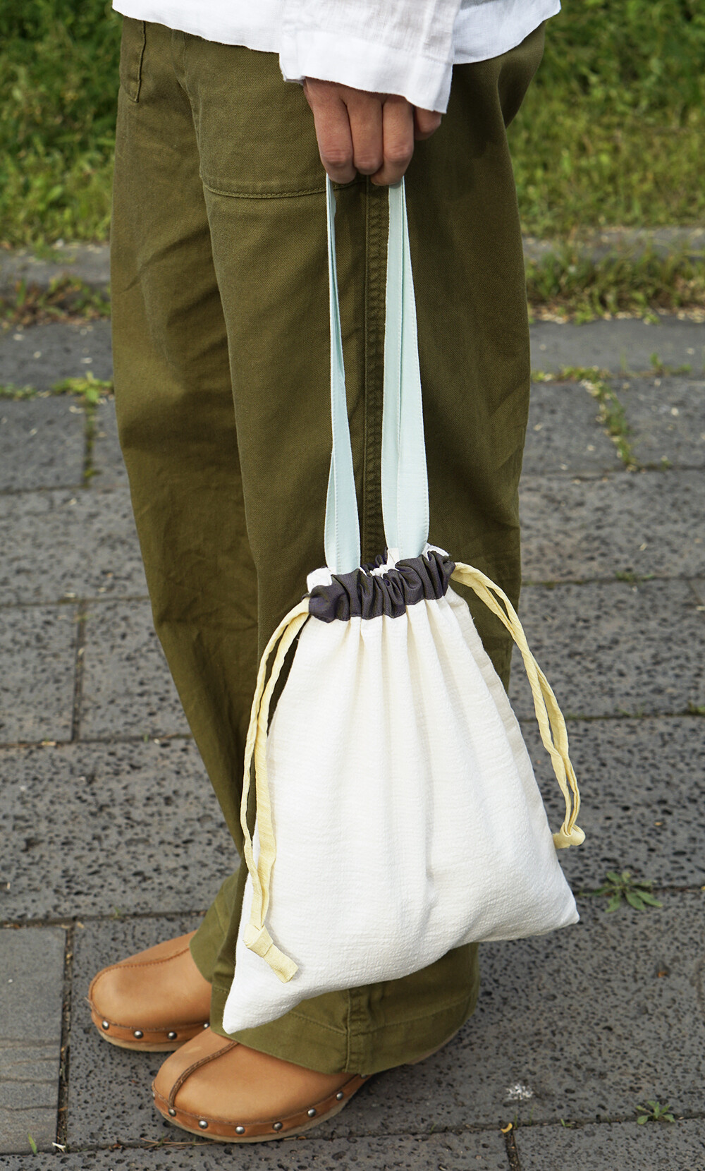 행주에 이어 두번째 작업은 한국적 배색 요소를 담은 string bag입니다 .