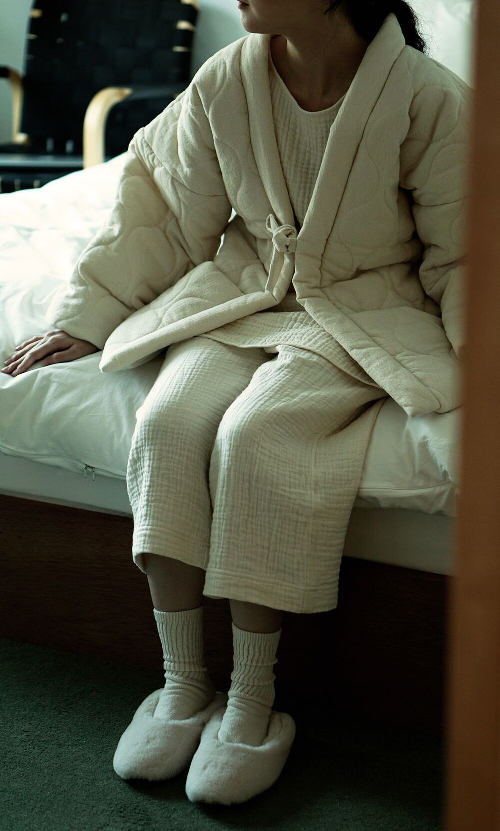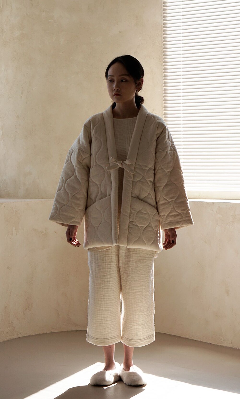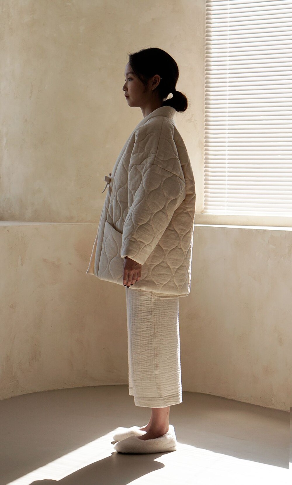 모델 164cm / 굿슬립웨어 상하의 아이보리 5호 착용 , 홈워머 아이보리 5호 착용