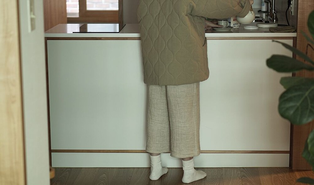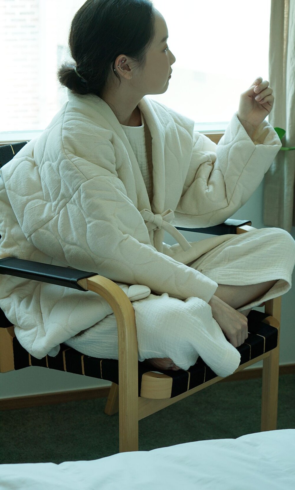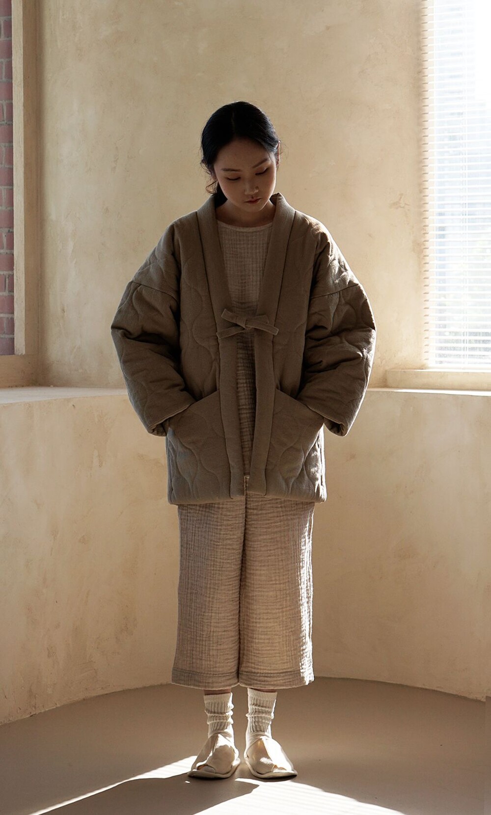 모델 164cm / 굿슬립웨어 상하의 브라운 6호 착용 , 홈워머 카키베이지 6호 착용