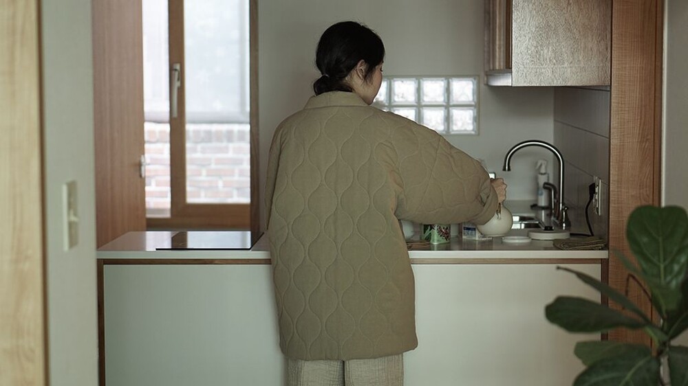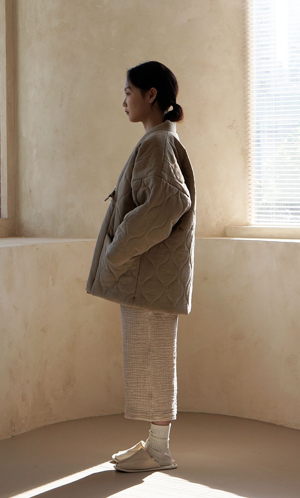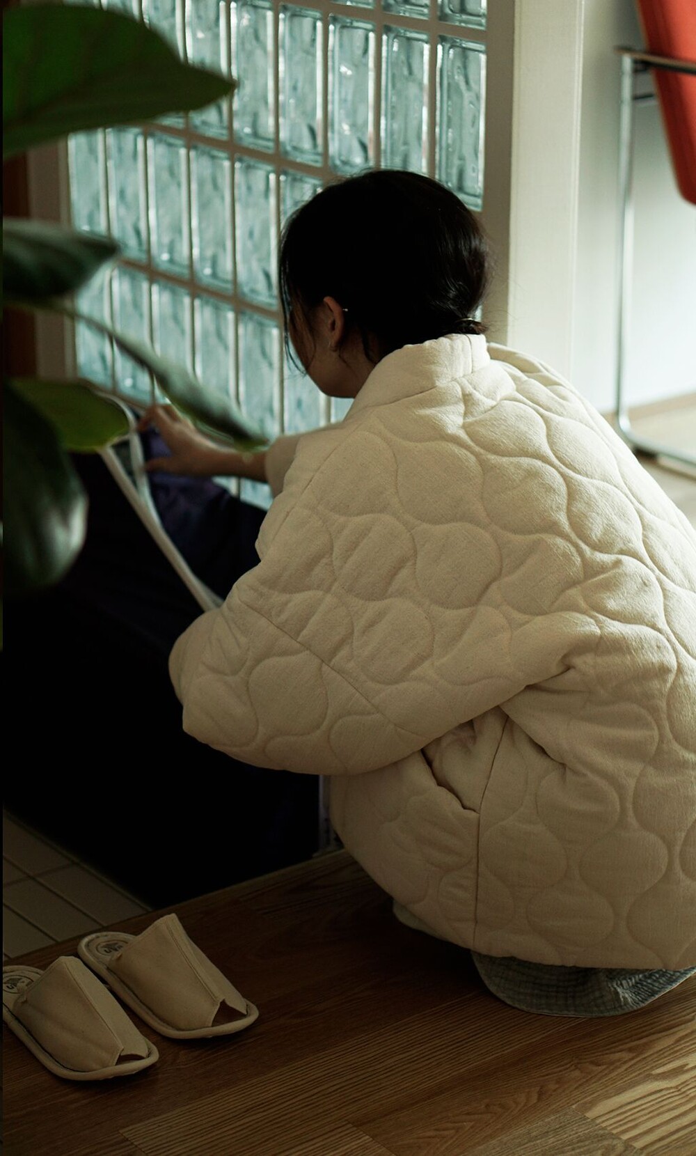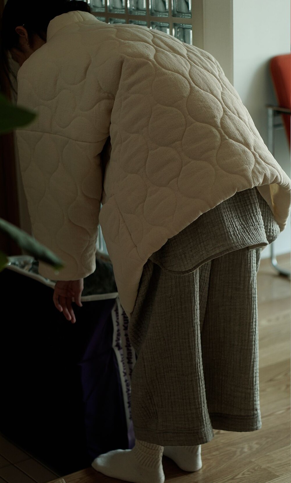 모델 164cm / 굿슬립웨어 상하의 브라운 6호 착용 , 홈워머 카키베이지 6호 착용