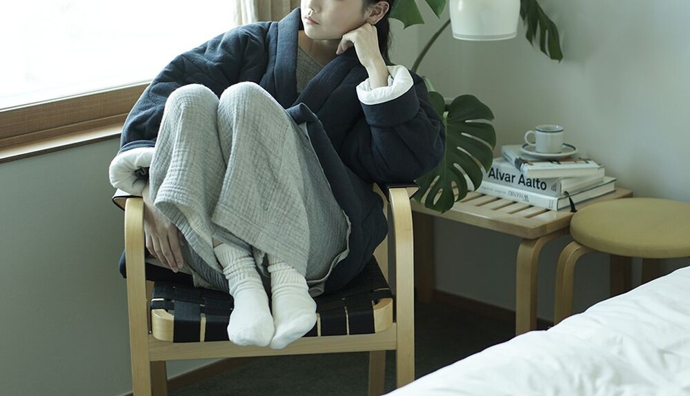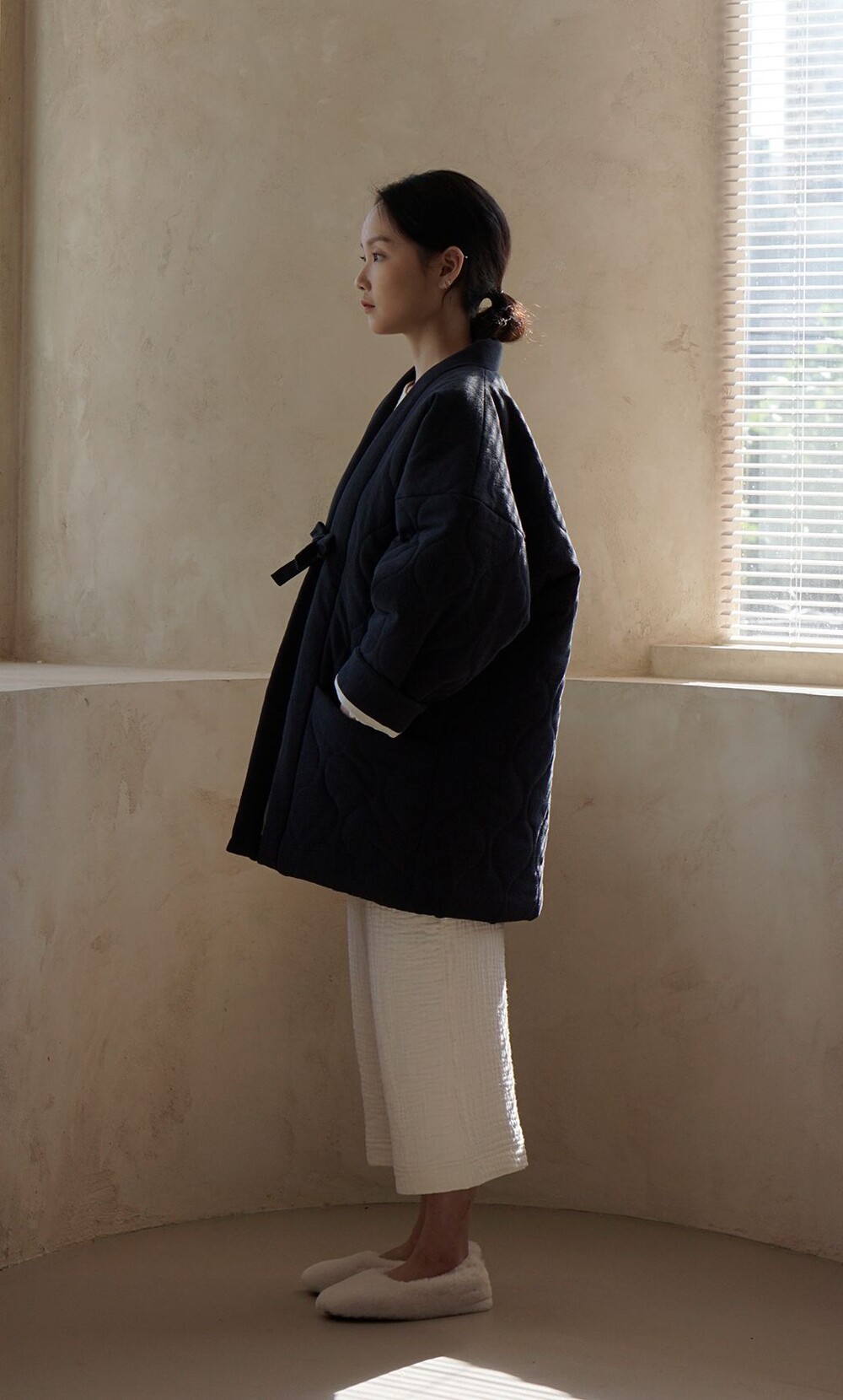 모델 164cm / 굿슬립웨어 상하의 브라운 6호 착용 , 홈워머 네이비 7호 착용